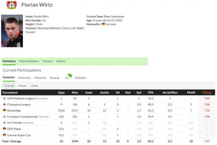 本赛季,虽然勒沃库森成绩下滑了,虽然阿隆索潜在转会离开让他们分心了,可勒沃库森拿到第二名的成绩保住底线,维尔茨在赛季里打出了16个进球14个助攻的成就,出色状态无需多言。