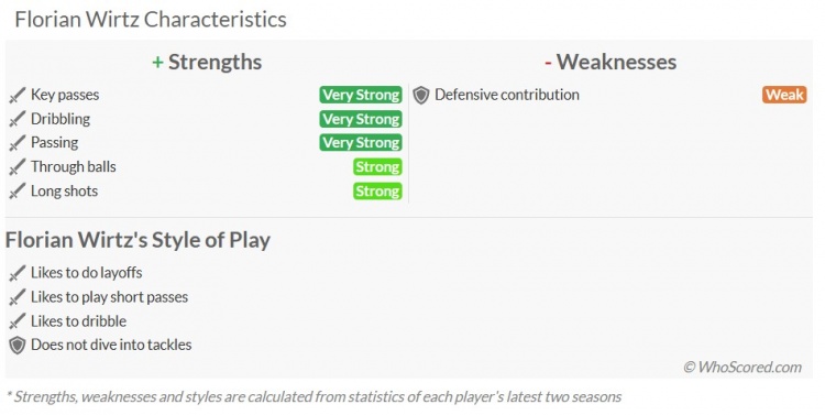 除了上面谈到几个基础能力对比外,维尔茨核心定位很明确。在勒沃库森哈维-阿隆索就很好演示怎么去激活维尔茨,作为指挥,维尔茨在前腰位置活动区域广泛,具有肋部游走及跑动实力,可很好对敌主要区域给出全覆盖。虽然速度不快,可他总是能够出现在关键点,这是专业人士对他赞誉有加的根本。